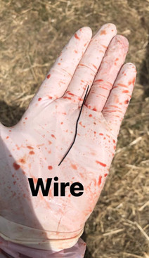 Typically, the wires contact with the heart doesn’t kill this cow. Instead, it’s what the wire causes. The leakage of stomach contents and bacteria into the chest, pericardial sac, and abdomen is very inflammatory and causes the body to mount a very large localized immune response. This immune response will result in adhesions, abscesses, and gross fluid. Eventually, the pressure on the heart, the overwhelming immune response, and/or sepsis will kill the cow.